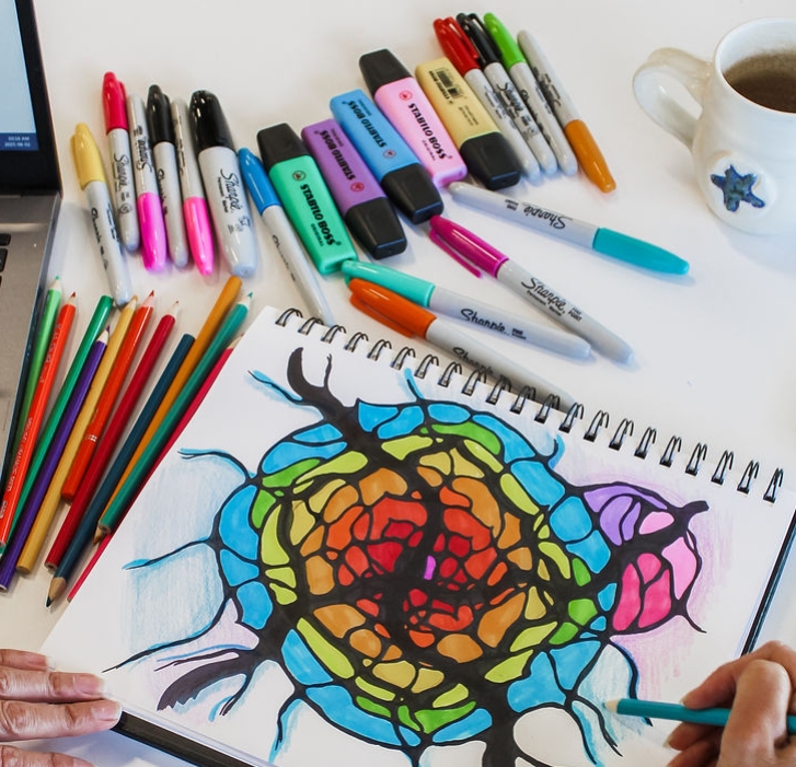 Neurographica is art + personal growth + psychology. It's a mindful and intuitive drawing tool which can help you play with ideas in a visual way. You don't have to think of yourself as "creative" to do it - it's more about the process than the product. Supplies are minimal for it too - just paper, a marker and something to color with.